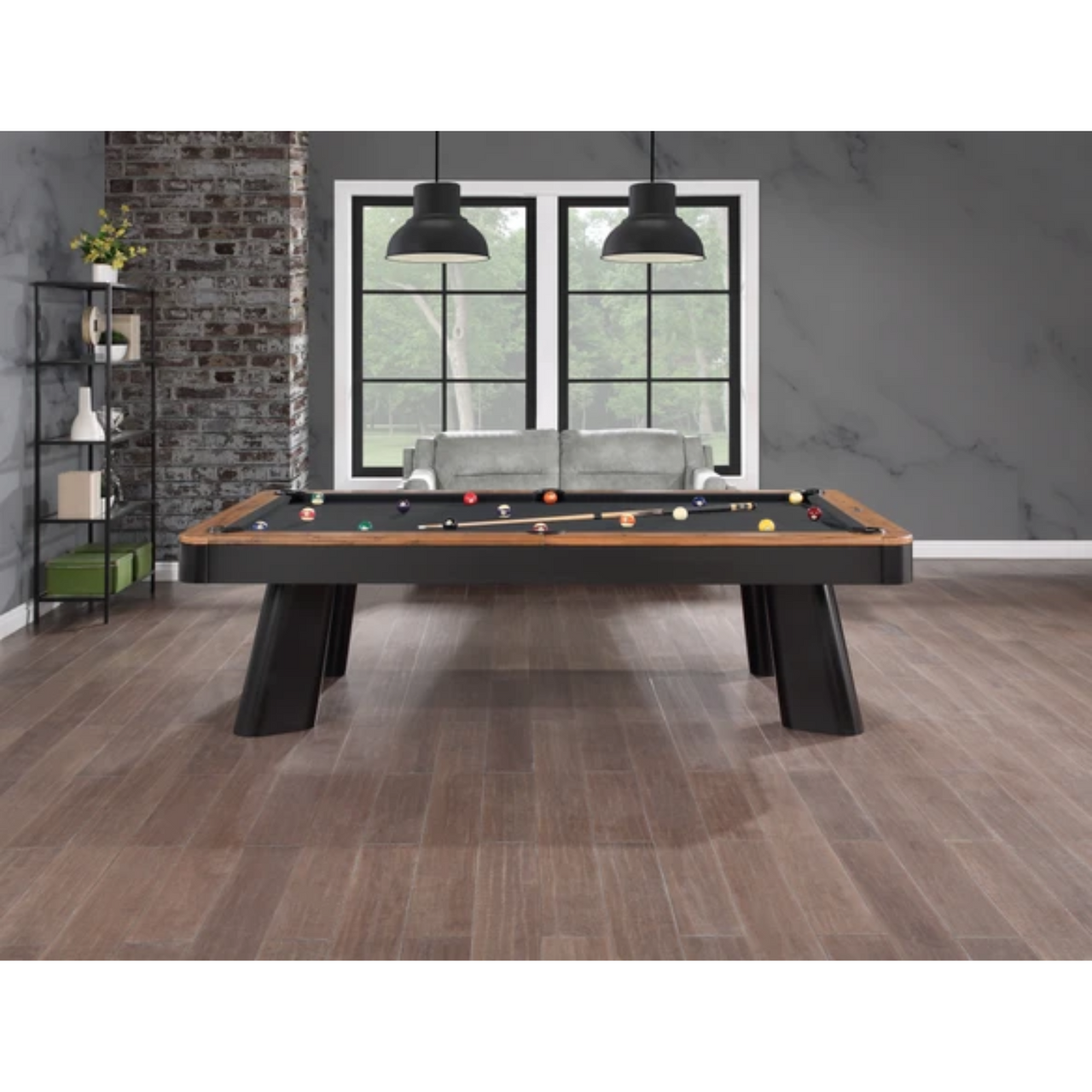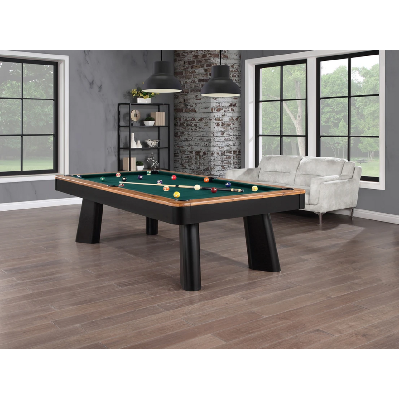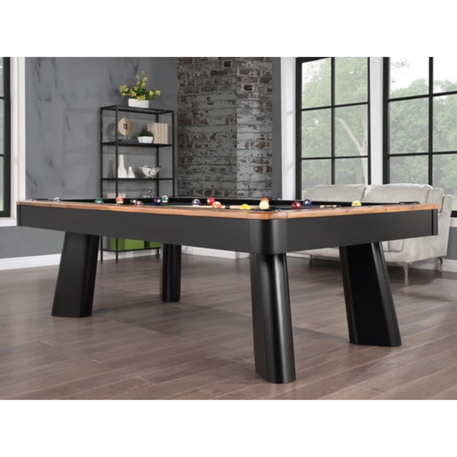 The word ‘nouveau’ means newly arrived or developed. Both the corners and legs of this table are rounded resulting in no sharp edges -a new concept – one never before featured on an Imperial pool table. A novel design paired with a rail finished in Acacia and a body finished in opaque black makes this two-tone table stands out from the crowd.