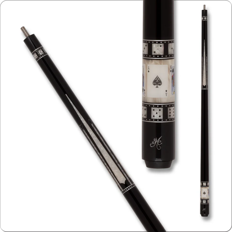The Meucci Casino Series are some of the most sought after cues on the market. The Casino 10 is a sharp looking cue. This sleek design features a pearl Paua shell sleeve with a 4-card Royal Flush bordered by pearl Paua shell Dice Set in Imitation Ivory.
