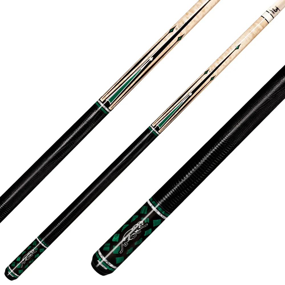 Revel in the artistry of the majestic Śurutē Panthera special edition Predator cues. Designed in partnership with Jacoby, these Panthera cues feature Ebony and Curly Maple wood with markings as unique as the predators that inspired them. Each cue is adorned with White Turquoise, Malachite, Micarta and Rose Gold accents.